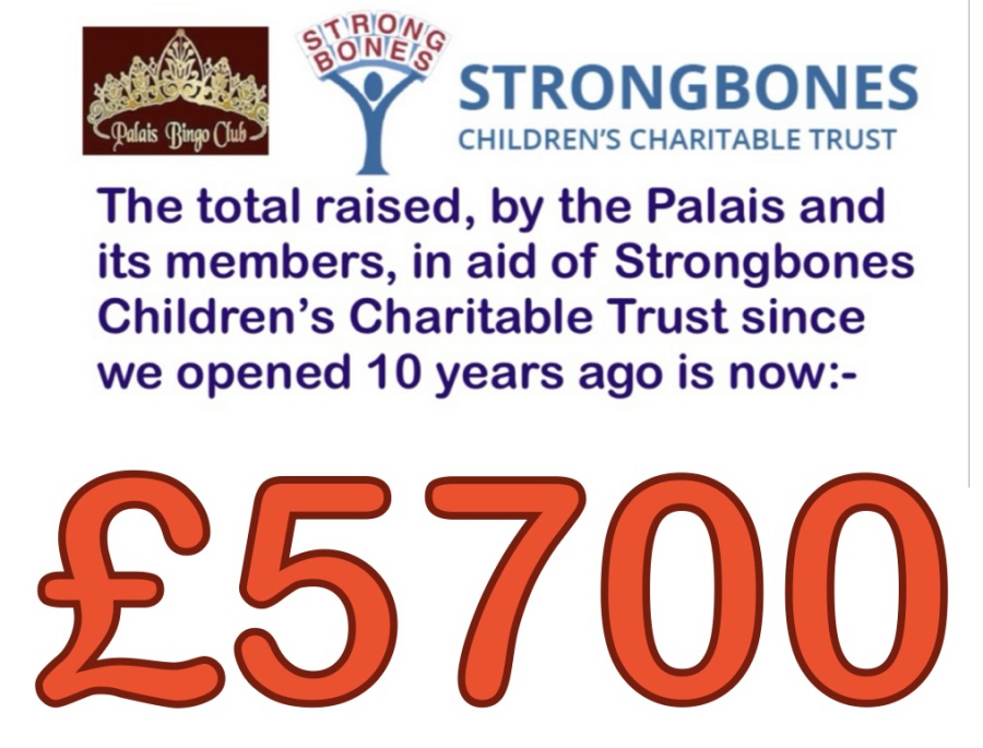 At Palais Bingo we support the Strongbones Childrens Charity. Strongbones Childrens Charitable Trust was set up to help alleviate the pain, suffering and financial burden of families who have children suffering from brittle bone disease, bone cancer, scoliosis, arthritis, and all other serious conditions of the bones. You can help by using our Book Exchange scheme.